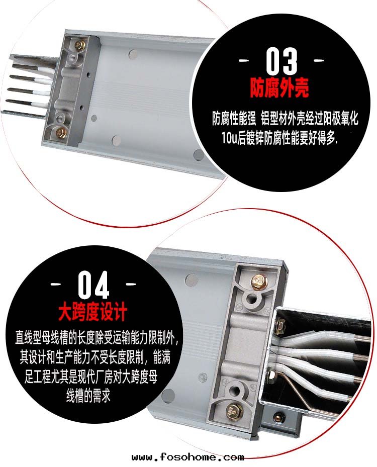 外(wài)殼(ké)采用(yòng)鋁(lǚ)鎂合金(jīn)型材,由(yóu)两(liǎng)側闆和(hé)上(shàng)下(xià)盖闆而(ér)成(chéng),側闆上(shàng)設計(jì)了散(sàn)热(rè)片(piàn)和(hé)燕尾(wěi)槽,既有(yǒu)利于(yú)母線(xiàn)槽的(de)散(sàn)热(rè),又加強(qiáng)了外(wài)殼(ké)剛度(dù),也(yě)便于(yú)安(ān)裝(zhuāng),同(tóng)时(shí)減輕(qīng)了母線(xiàn)槽重(zhòng)量(liàng),可(kě)大(dà)跨度(dù)設計(jì)和(hé)減少(shǎo)安(ān)裝(zhuāng)支架.